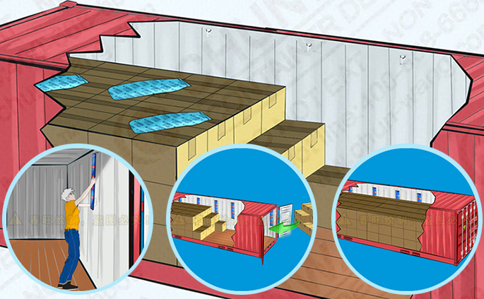 Vykonajte preventívne opatrenia, napríklad použite vrecúška s vysúšadlom. Účelom je absorbovať vlhkosť zo vzduchu, aby sa znížilo množstvo vlhkosti v oceánskom kontajneri. Použité množstvo sušidla závisí od samotného tovaru, plavebných míľ a vášho prijateľného stupňa poškodenia. Vo všeobecnosti, pre 20-stopový kontajner použite 6~8 1kgsušidlo nádoby, ako je typ Chunwang CODC-91-10. Prosím, zaveste vysúšadlo nádoby na závesný krúžok na stenu. Ak obsahuje materiál s vysokým obsahom vody, ako je drevené puzdro, paleta, zvážte zvýšenie použitia množstva sušidla. Pre cenný tovar je to potrebné pre lepšiu ochranu. Vrecúško s vysúšadlom môžete tiež narovnať na povrch kartónov, napríklad Chunwang CODD-91-10. Ponechajte dostatok miesta na vysúšadlo, nestláčajte ho.